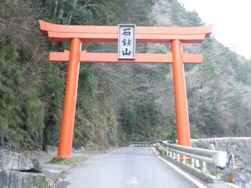 国道438号線を剱山方面に向かって走ると右手に「石鉄山」の大鳥居が見える。 以前から通るたびに気になっていたが、日暮れが近づいているので詳しい探索は次回にすることにしてとりあえず鳥居をくぐってバイクで登ってみる。石鉄山大権現の石碑 津志嶽天日神…