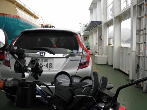近くまで来たついでに洲江港の様子を見ておこうと思いフェリー桟橋に行ってみる。岩城島に渡るつもりはなかったのだが、乗船方法に戸惑っている客と勘違いされたらしい。 出航直前の車両甲板にいた係員の一人がおいでおいでと手を振っている。5秒ほど躊躇し…