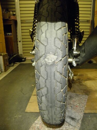 今回のパンクは落ち葉に覆われた舗装路のわだち部分に砂利が散らばる、山道によくあるシチュエーションでのトラブルだ。 リアタイヤはおおむね8000~9000kmで交換しているが、7000km以上走ったタイヤではなるべくダート路に入らないよう気をつけていた。 ケ…